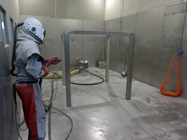 Proprio per avere una migliore resa estetica su questo materiale usiamo graniglia di vetro superfine (100-200 micron) .