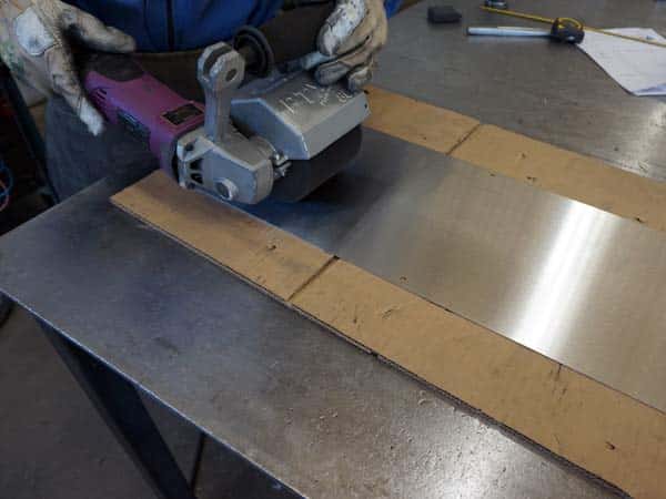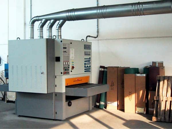 Per satinare i particolari già saldati o le lamiere di piccole dimensioni utilizziamo apposite satinatrici manuali; per quanto riguarda le lamiere piane più grandi, invece, utilizziamo la satinatrice/spazzolatrice automatica con larghezza 1300 mm.