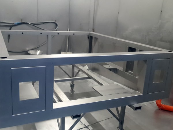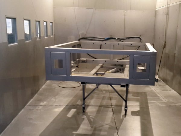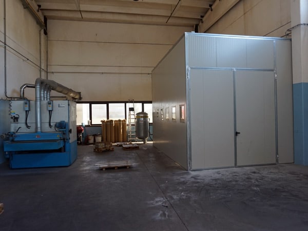 Per particolari di medio/grandi dimensioni abbiamo invece una cabina con dimensioni 6 x 4 mt dove all’interno si possono trattare anche particolari molto grandi come basamenti per macchine automatiche sempre di acciaio inox. Anche in questo caso la graniglia è di vetro con diametri da 100 a 200 micron.
